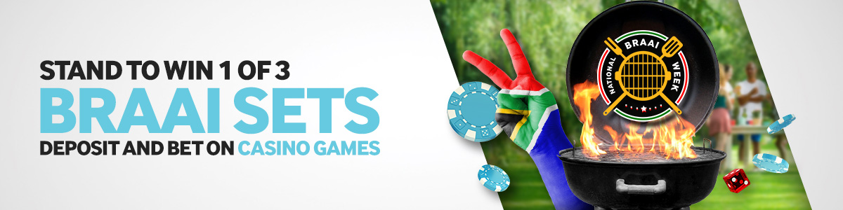 - Players need to deposit and wager R50 or more on any Casino Games to qualify for the National Braai Week promotion. In order to earn a point towards the leaderboard, customers must bet R10 or more on any Casino Games.