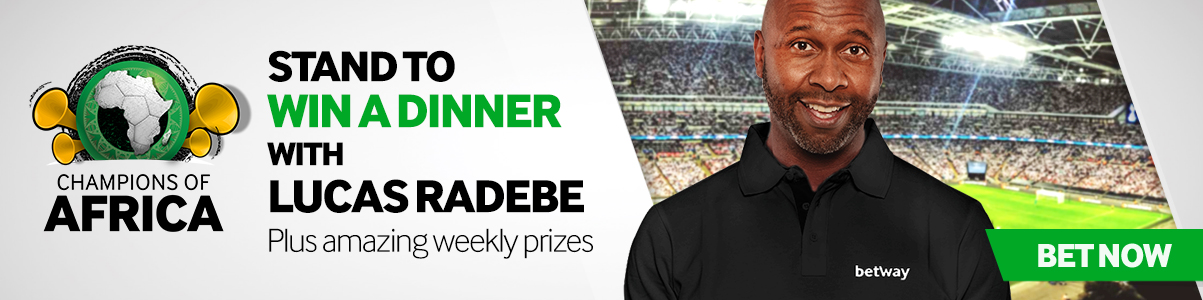 Place six or more bets on any AFCON fixtures, and you could win a dinner with South African soccer legend, Lucas Radebe. Also up for grabs are weekly prizes including cash, Extra Bets and real world prizes.