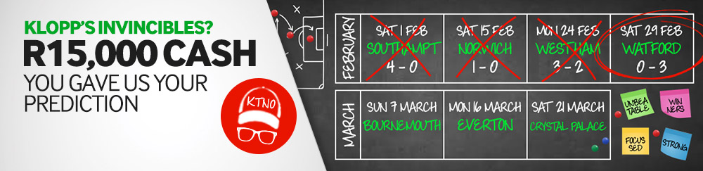 Watford has ended Liverpool's unbeaten run. If you have predicted correctly, you will be going into a draw to win a share of R15,000 cash.